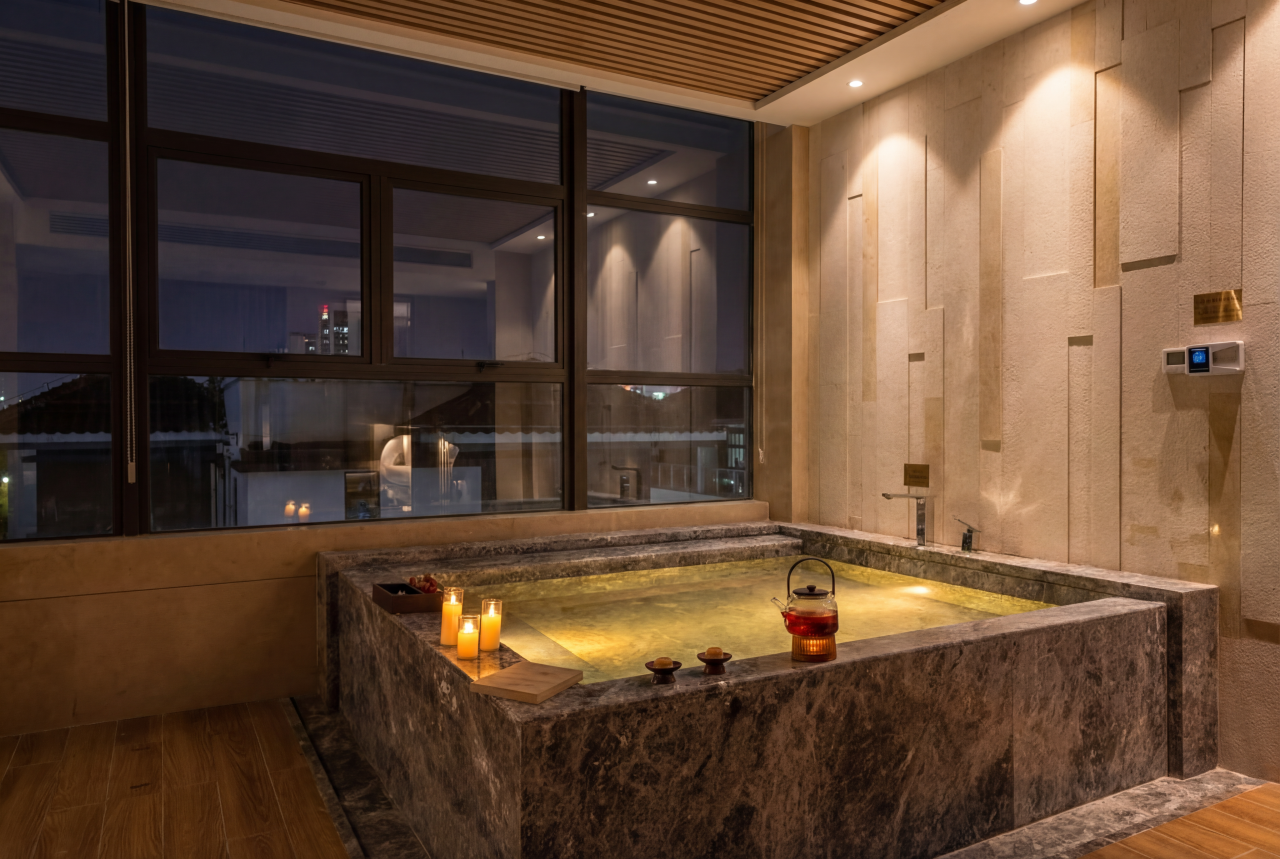 温泉泉源取自涌而出的“氡”温泉,泉眼出水温度达87°C天然温泉,每一滴皆源自大地温暖的馈赠酒店近200间豪华客房均配备独立泡池,让浸润与放松成为私享的日常