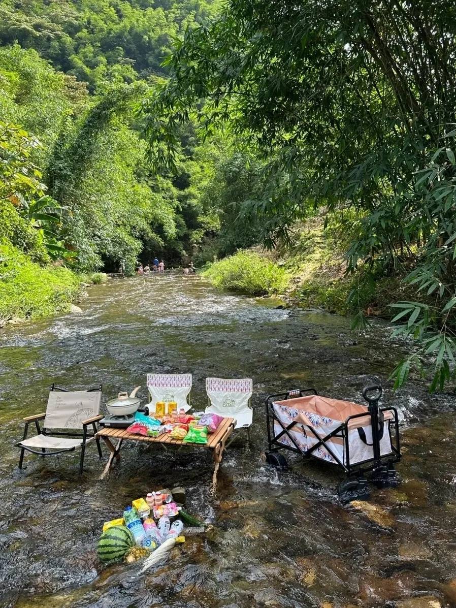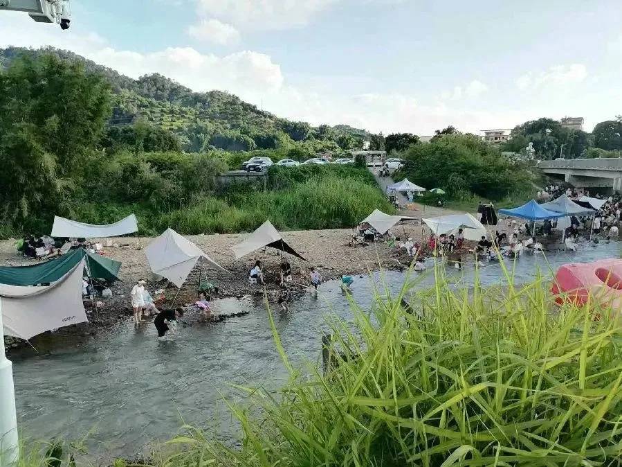 流溪河的源头之一,四面环山,车可以直接开到小溪河滩边,溪流两边的都有足够的位置都可以把天幕搭起来,免费停车