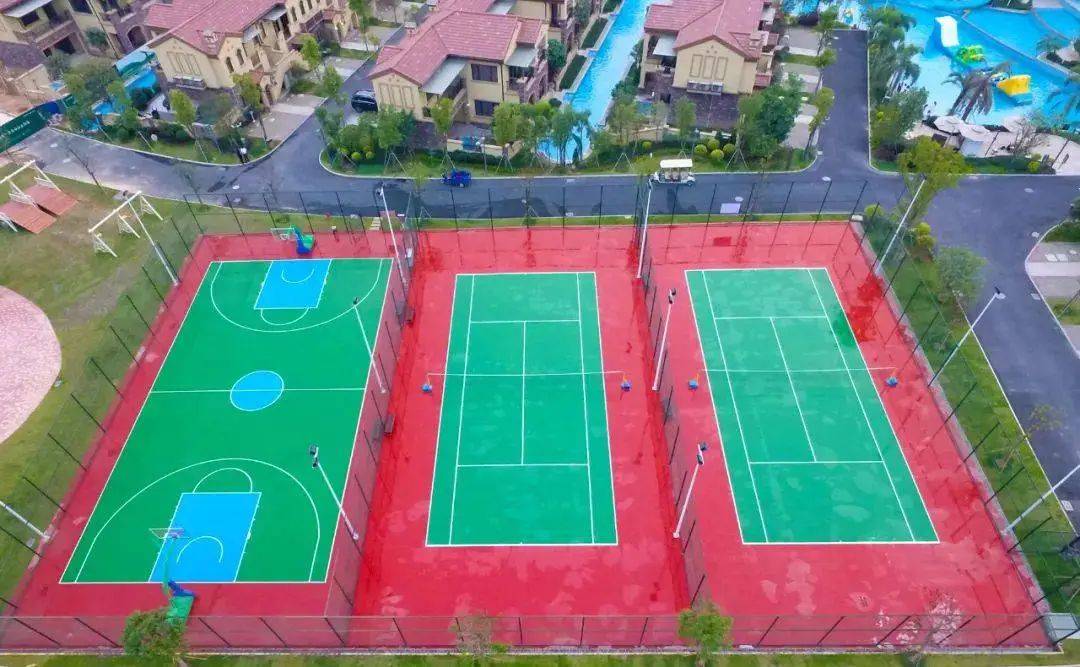 体育区与儿童乐园约700平方,配有篮球场、网球场、羽毛球场,出门在外也可以来一场酣畅淋漓的运动