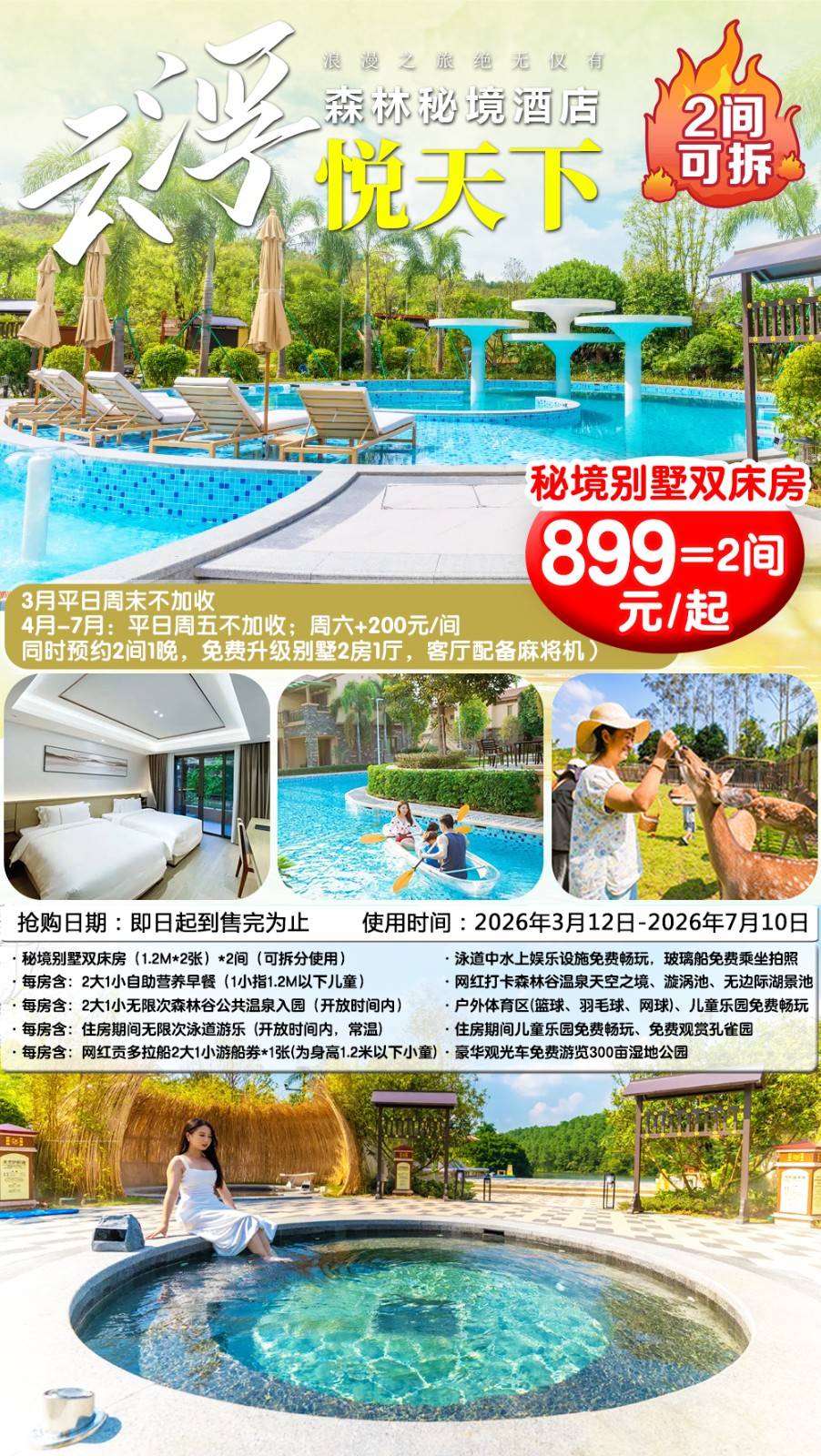 ● 每房含:2大1小无限次森林谷公共温泉入园(开放时间内)