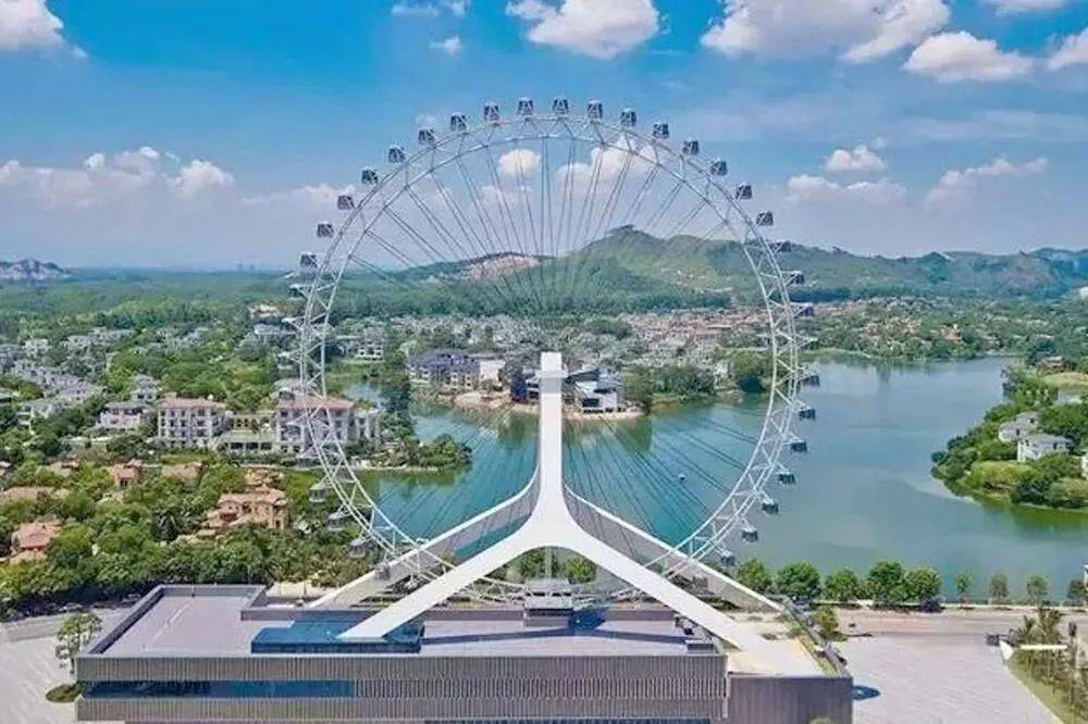 坐落在石角镇美林湖社区湖岸西路,建筑面积达到2500㎡的超大型摩天轮。是国内最大的屋顶摩天轮,据说也可以称为全国第二大的摩天轮。造价超过1亿元、高101米、48只轿厢,每个轿厢可坐8人,尽揽湖光山色!已成为目前清远的新地标!