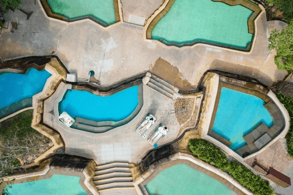 拥有138个温泉池,将整个酒店围绕在一起