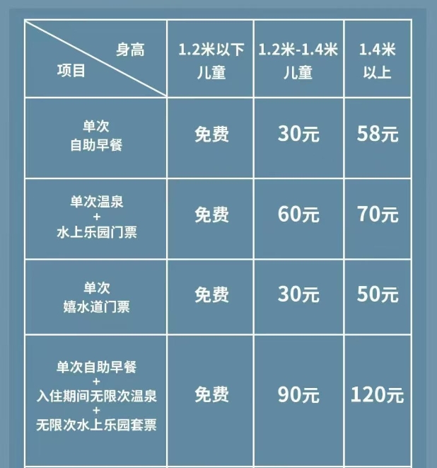 * 酒店配套设施/赠送项目设施实际开放时间请以现场为准,如遇上不可抗力因素无法开放,不退不改,具体开放情况以现场为准,请见谅。