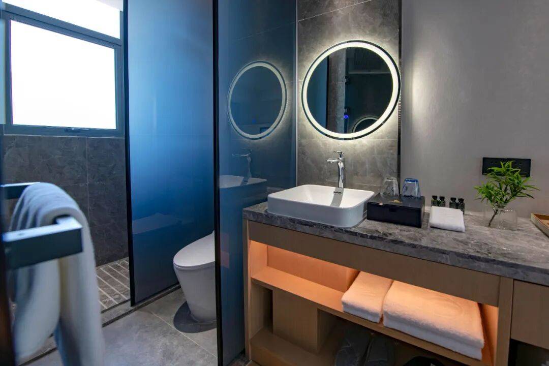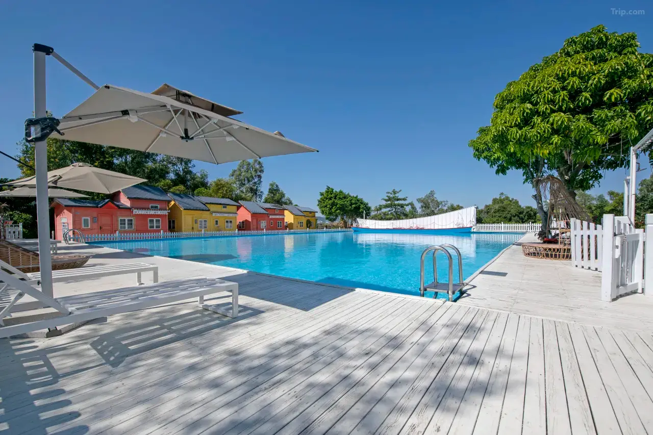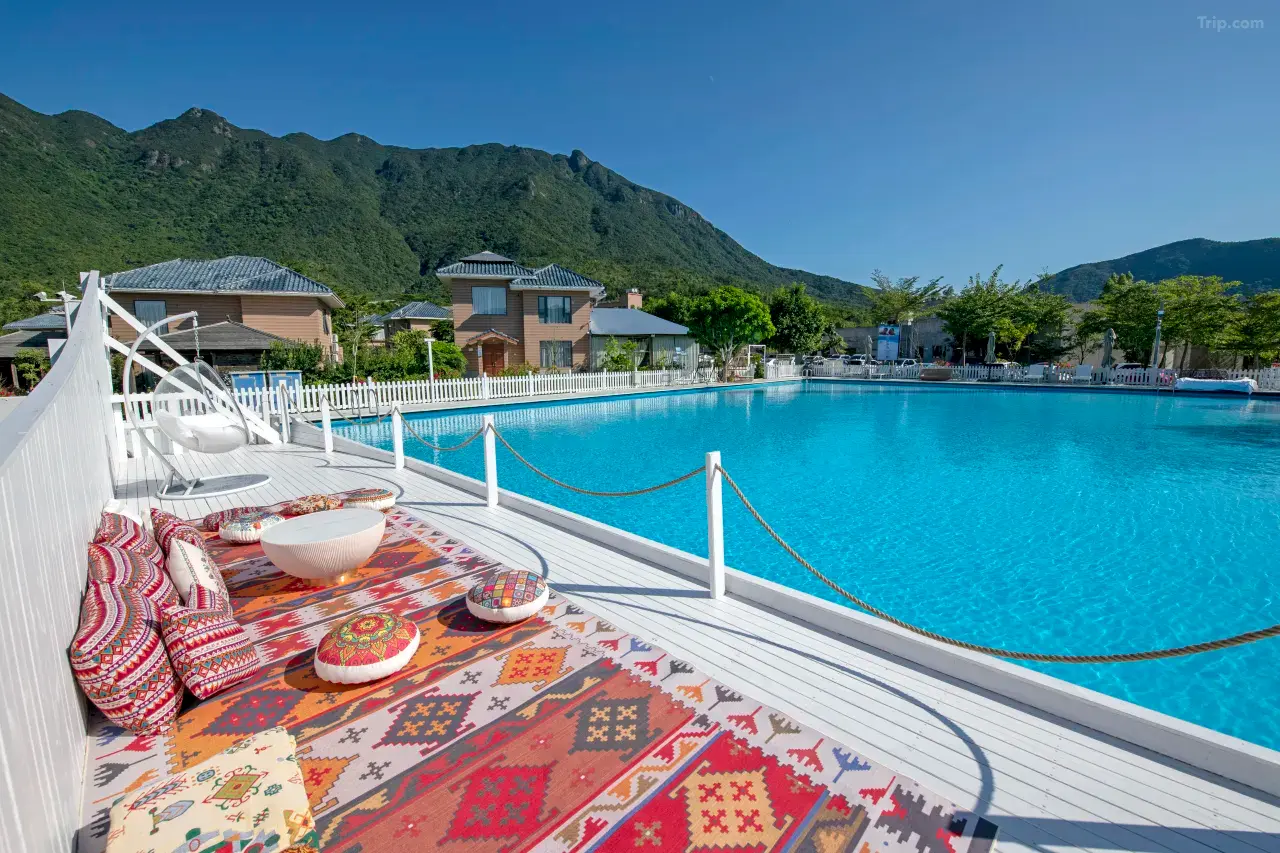 度假区里面还有个露天网红泳池!徜徉在泳池,满眼都是碧蓝,恍惚间仿佛置身大海。视线放远、绿意盎然、群山环绕,听着耳边的鸟鸣虫叫,拥抱着山与海(泳池正在升级改造中,预计6月对外开放)。