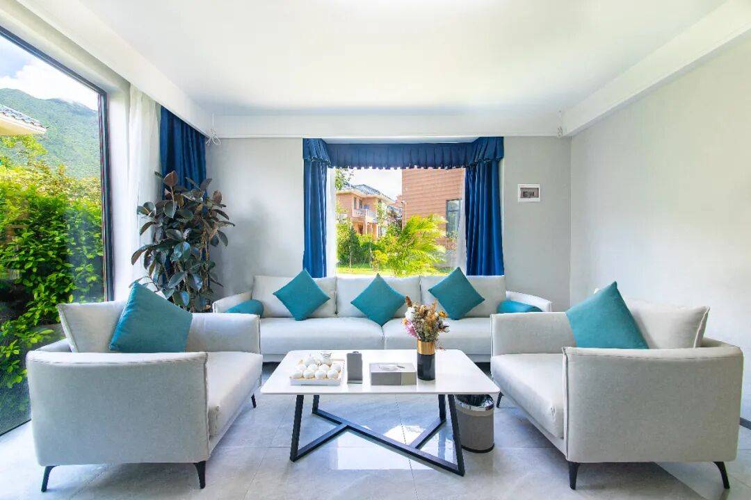山景大床/山景双床为别墅的其中一间客房,客厅是公共区域;