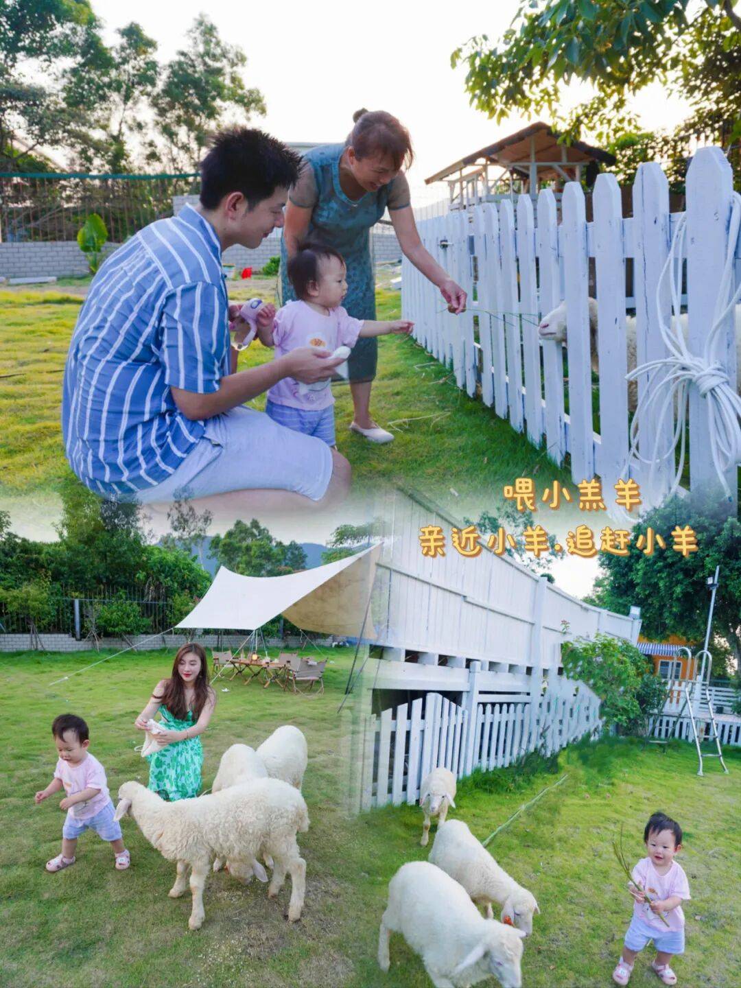带娃来和牧场里的小羊拍照互动