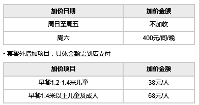 • 以下日期入住和升级房型需额外在线支付房间差价