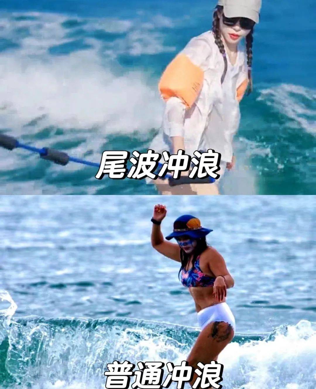 ⑤不敢玩尾波的小白,可以先尝试普通冲浪
