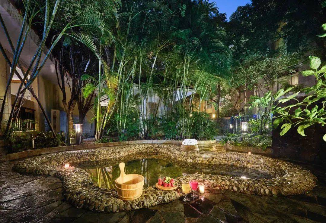 浸泡在汤泉池中舒展身心,回归自然