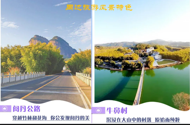 -阅丹公路:一条连接市区与丹霞山的乡村公路;全长54.6公里,沿线风景如画,被打造成为醉美乡村旅游公路。
