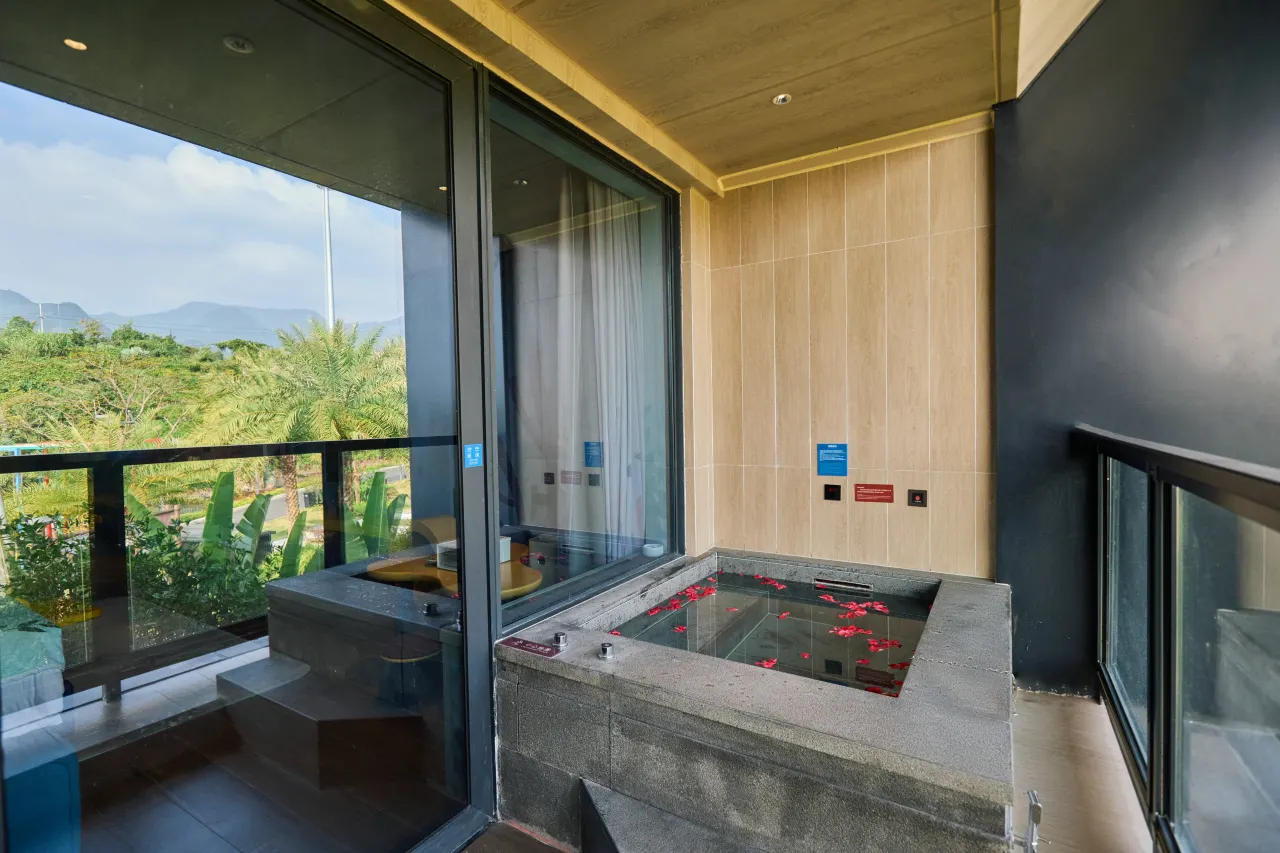 每间房均配有独立温泉泡池,