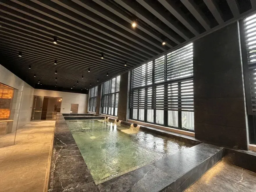 温泉区域由金、木、水、火、土五大元素组成,共计19个特色泡池,及1个室内冷热养生池,干湿蒸房等。