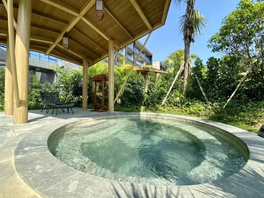精致的风情设计,不仅遮阳避雨,也是泡完后休闲和拍照的好地方。