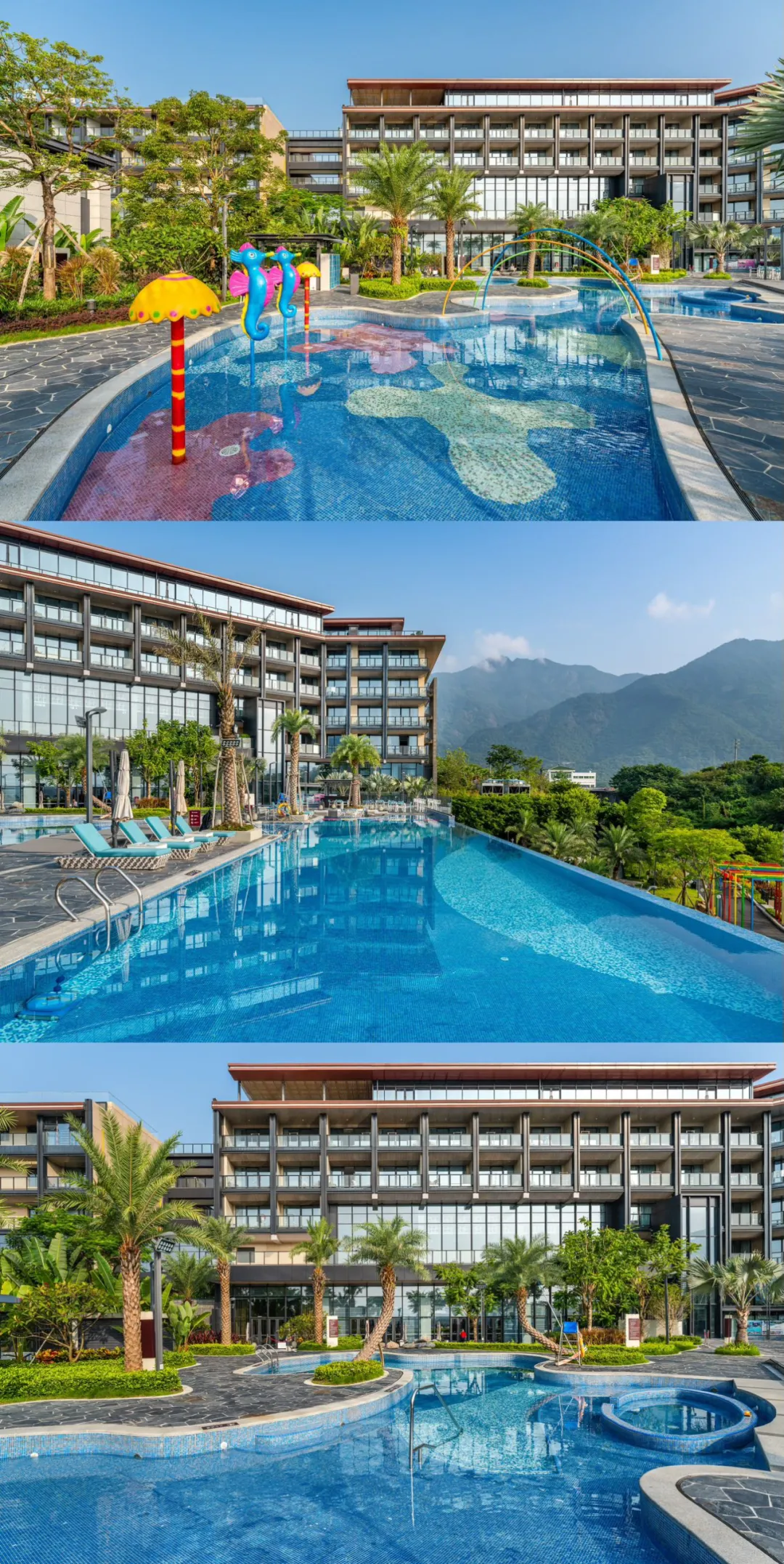 除温泉外,酒店还设有近300㎡的户外无边际泳池和230㎡的儿童游泳池。占地面积够大,玩起来才享受。