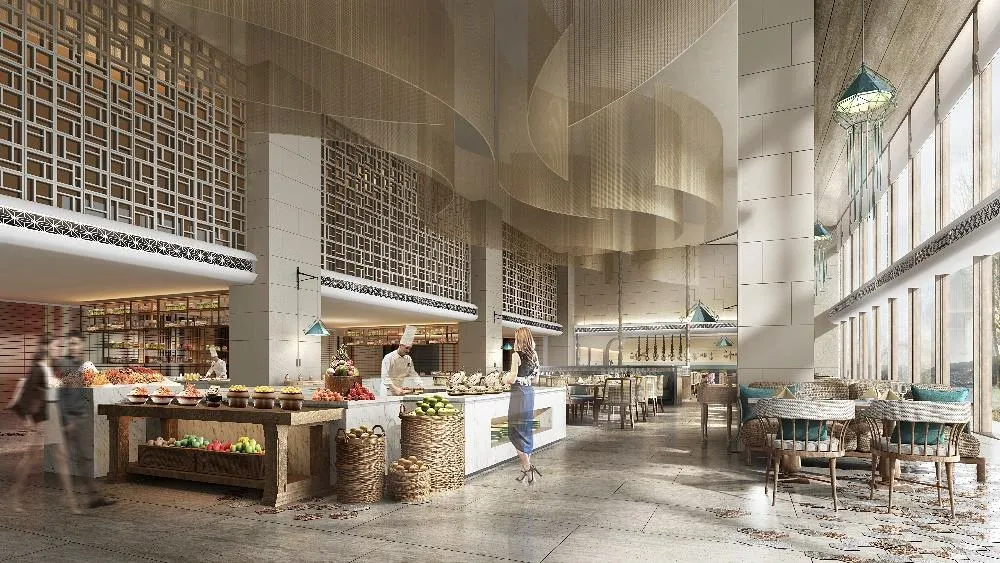 位于酒店首层,室内144个餐位+室外20个餐位,包含露台就餐区和儿童专属就餐区。