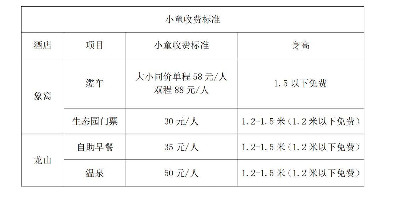 *上述中的2小为2名1.2米以下的儿童