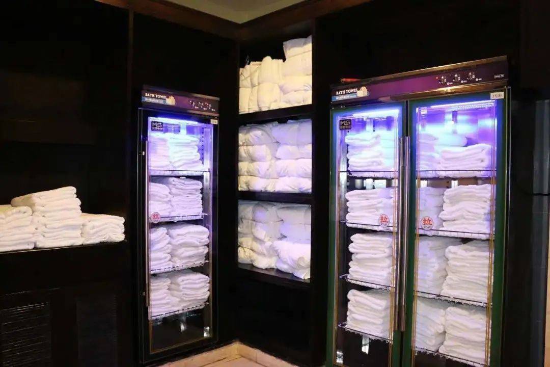 温泉区内毛巾拖鞋等洗漱用品都经过