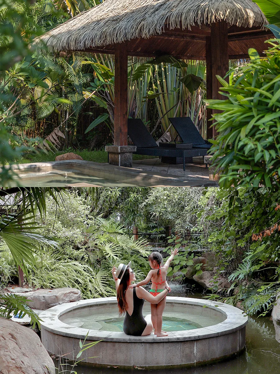 汤池都被绿植包围着,真的太舒服啦
