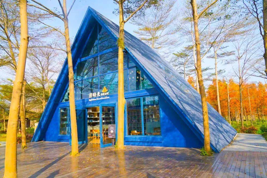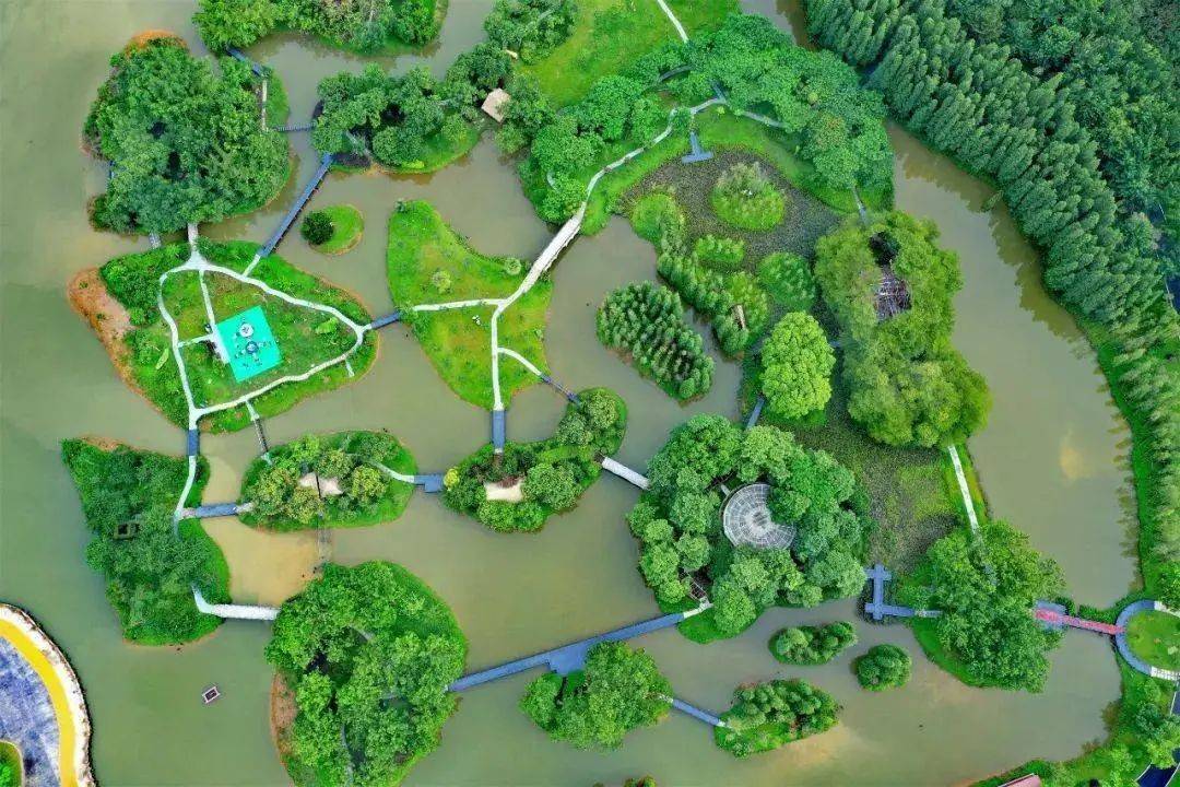 掩映在森林中,矗立在湿地岛水杉林湖畔