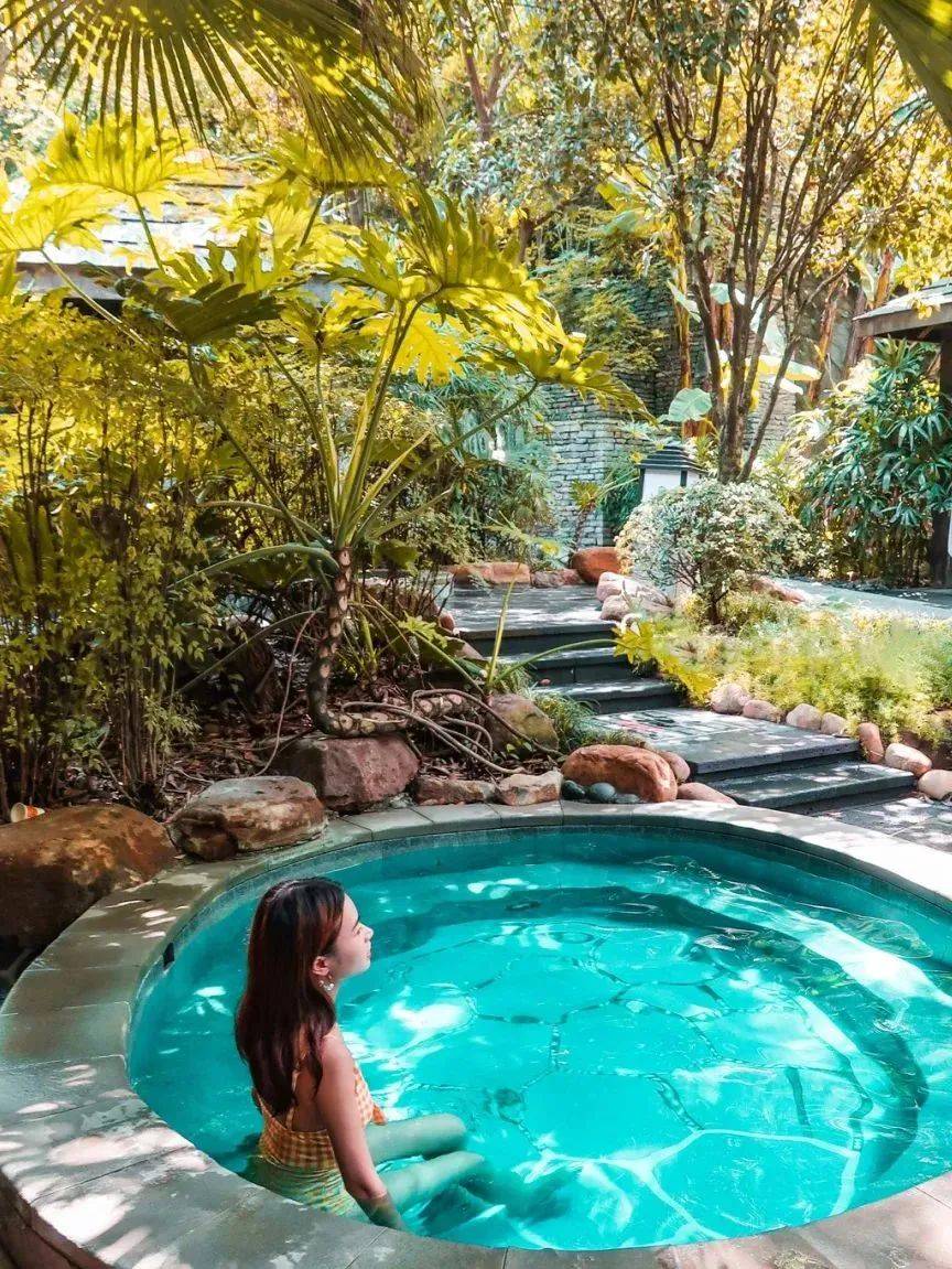 隐映在花草树木之中108个大小各异的泡池极具特色
